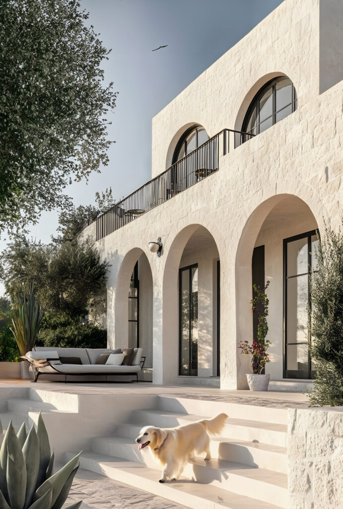 Charakterystyczne łuki, fasady o ciepłej fakturze i szerokie otwory wpuszczają naturalne światło, promując wydajną wentylację i niższe zużycie energii. Każdy szczegół został przemyślany, aby zapewnić komfort i wyrafinowanie, nie tracąc przy tym istoty tradycji architektonicznej, która definiuje tożsamość tego miejsca.